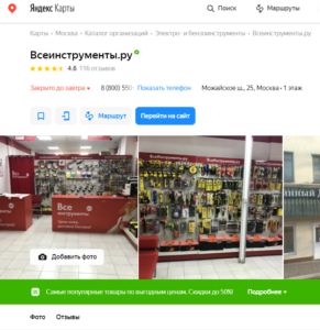 Запущенный в 2006 году сайт «ВсеИнструменты.ру» сейчас является одним из крупнейших DIY интернет-магазинов России: в ассортименте до 300 тыс. товаров, среди которых инструменты, садовая, климатическая и силовая техника, строительное оборудование, станки, сантехника и многое другое.