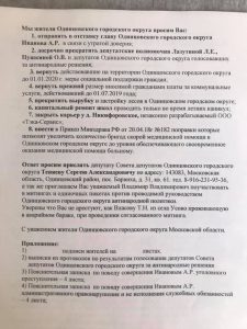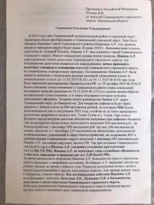 В 2019 году наш Одинцовский муниципальный район и городской округ Звенигород были преобразованы в Одинцовский городской округ. Нам было обещано бывшим главой Одинцовского района Ивановым А.Р., что уровень жизни в городском округе будет выше. В июне 2019 г. большинством голосов депутатов из «Единой России», Иванов А.Р. был назначен главой Одинцовского городского округа. Вместо повышения уровня жизни граждан, Иванов А.Р. через решения Совета депутатов Одинцовского городского округа, где большинство депутатов являются его подельниками, начал проводить политику геноцида в отношении жителей Одинцовского городского округа по социальному и возрастному признаку. По инициативе Иванова А.Р. были приняты решения о повышении размера вносимой гражданами платы за коммунальные услуги (от 31.05.2019 № 8/3 от 05.11.2019 № 8/10) при этом было нарушено распоряжение Правительства РФ от 29 октября 2019 № 2556-Р.