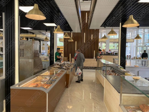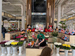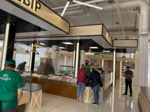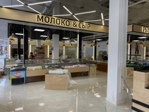 В ассортименте товаров представлены молочные продукты, рыба, мясо, овощи, фрукты, кондитерские изделия, цветы.