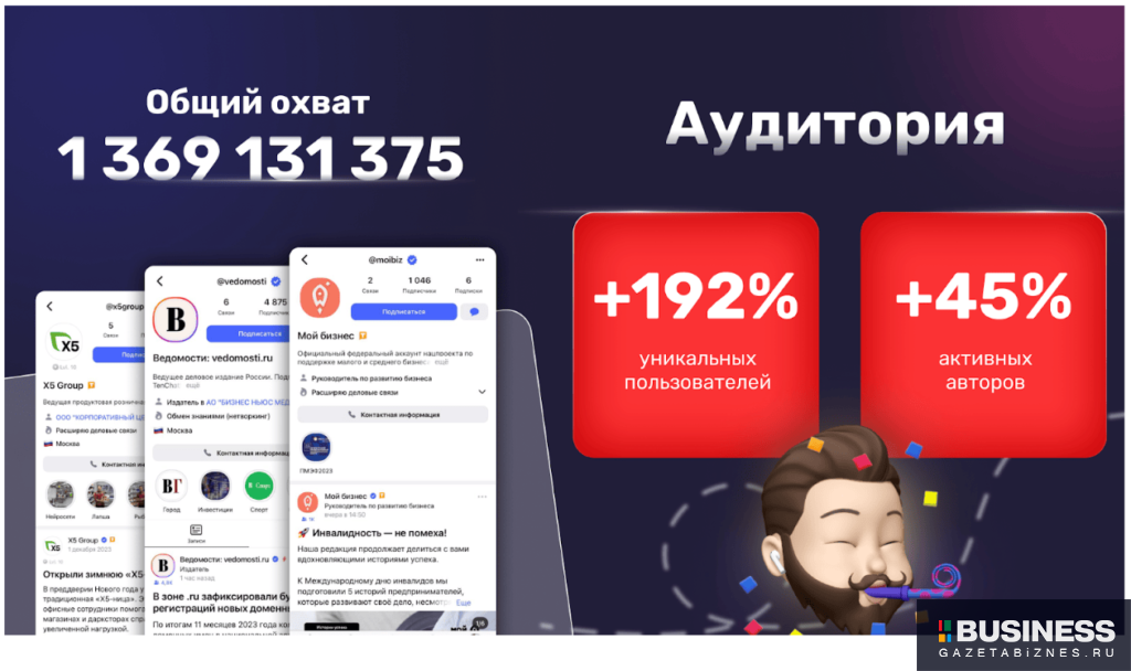 Число уникальных посетителей TenChat увеличилось на 192%, а активных авторов — на 45%. Также TenChat стала доступна для регистрации в 12 странах. По статистике, 56,9% пользователей — предпринимателей и топ-менеджеров.